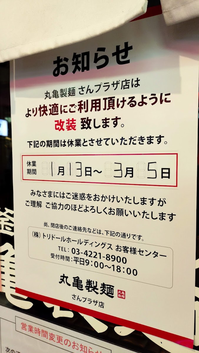 From a reviewer’s perspective, the menu at Marugame Seimen San Plaza may appear concise, but it clearly reflects the brand’s dedication to bold flavors and freshly prepared udon. The standout offering, 旨辛 肉盛りニラ玉ぶっかけうどん, perfectly encapsulates the restaurant’s approach to comfort food with a punch: thick, chewy udon noodles served in a bukkake style and elevated by a generous topping of savory meat, fragrant garlic chives, soft egg, and a pleasantly spicy seasoning. Rather than overwhelming diners with variety, this focused menu choice highlights balance-heat, umami, and richness working together in a single, satisfying bowl. As a conclusion to the menu experience, it’s clear that Marugame Seimen San Plaza prioritizes quality, freshness, and a memorable flavor profile, making even a simple selection feel complete and thoughtfully crafted.